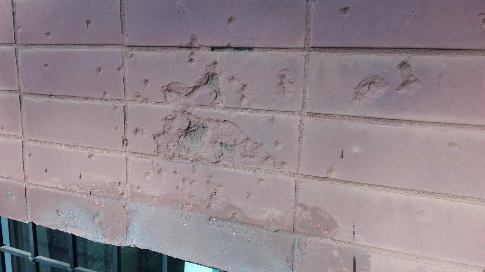 Wszystkie ślady po kulach zostały zasłonięte podczas termomodernizacji budynków szkolnych w lecie 2022 roku. Ich fragment prezentuje poniższe zdjęcie